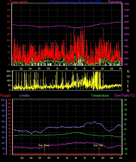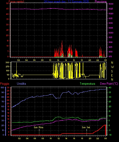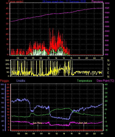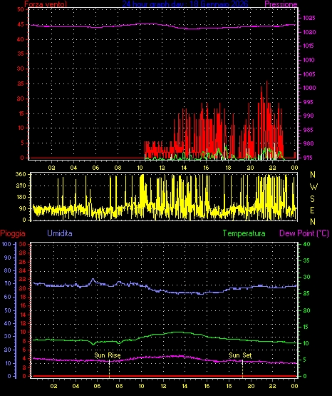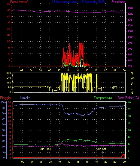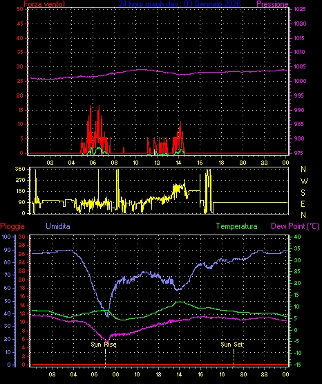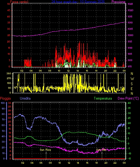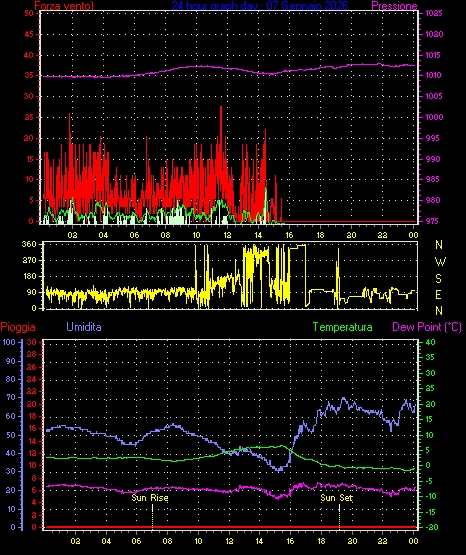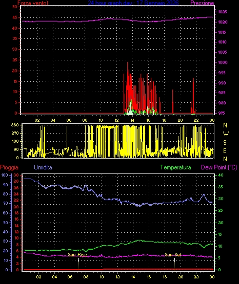 Velocità massima di raffica = 16.6 km/h da 068°(ENE) giorno 03 tempo 06:35