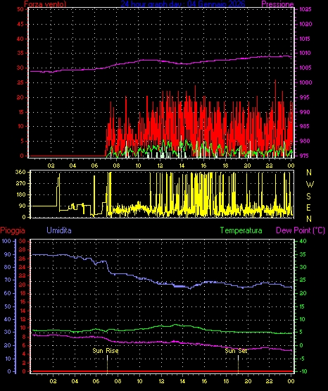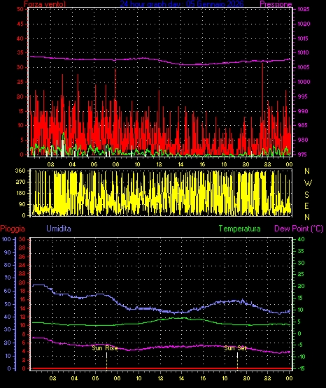 Media direzione vento = 321° ( NW)
