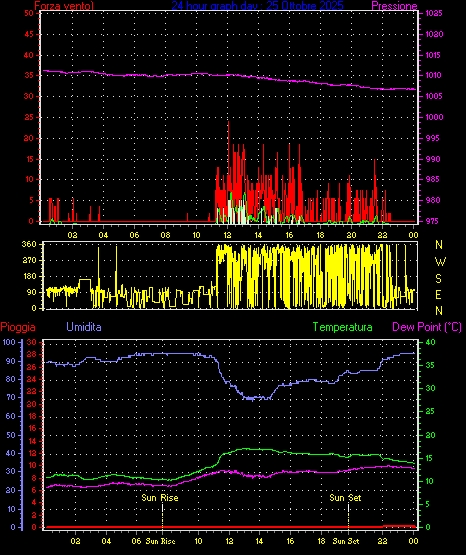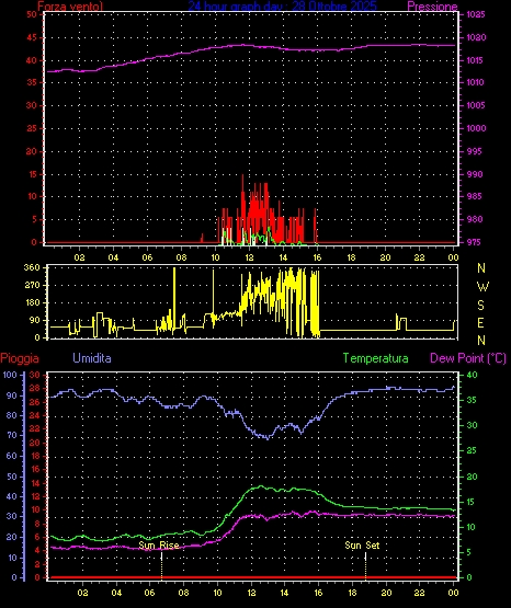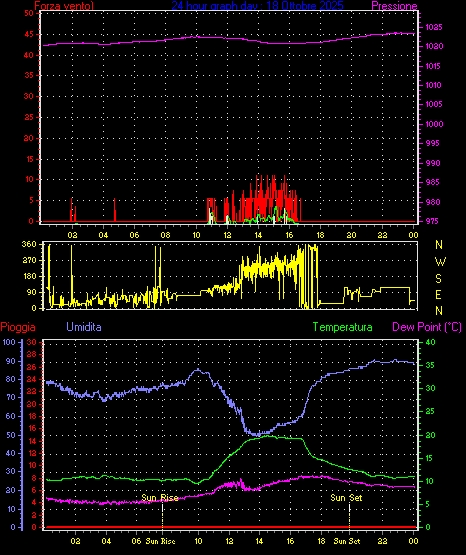Il massimo windspeed = 20.4 kmh from 045°( NE) giorno 05 tempo 09:26