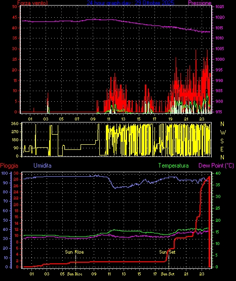 Velocità massima di raffica = 24.1 km/h da 360°( N ) giorno 02 tempo 00:28