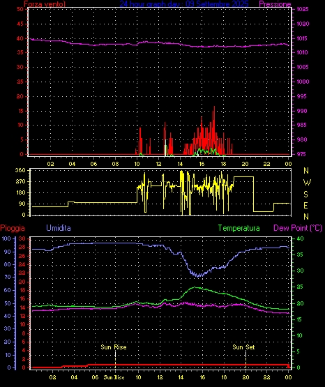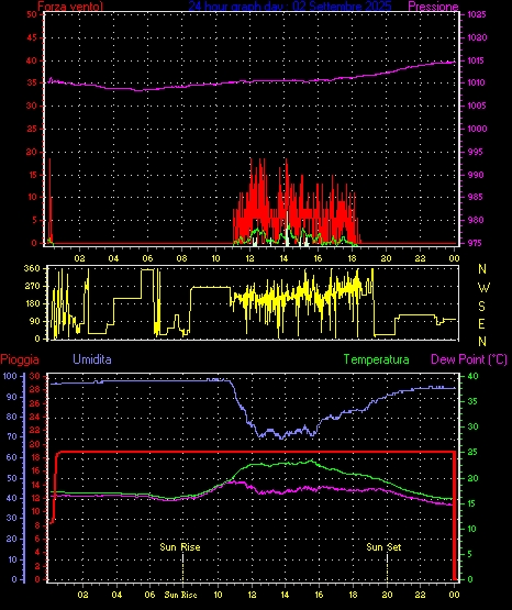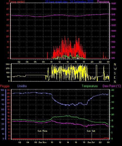 Velocità massima di raffica = 46.3 km/h da 135°( SE) giorno 01 tempo 23:42