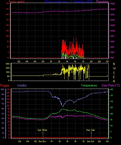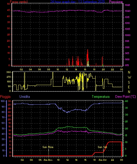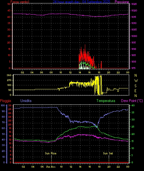 Velocità massima di raffica = 16.6 km/h da 225°( SW) giorno 03 tempo 15:41