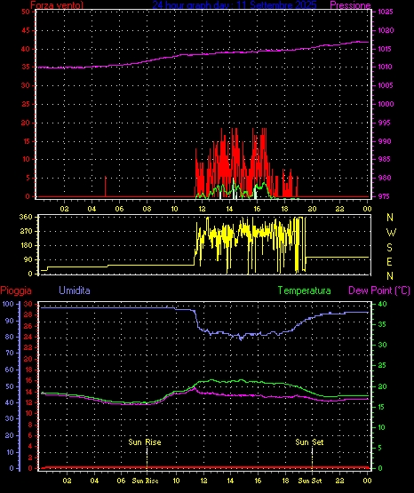 Velocità massima di raffica = 18.5 km/h da 203°(SSW) giorno 04 tempo 15:04