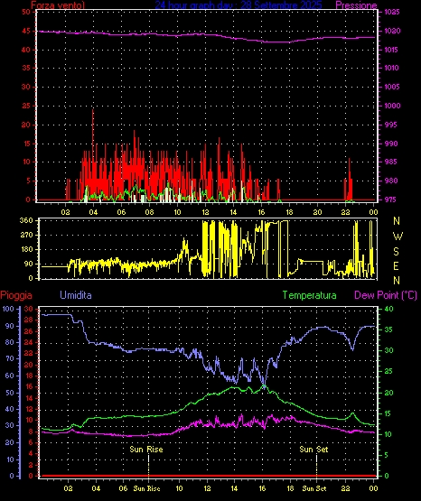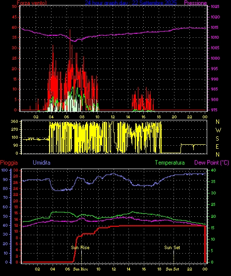 Velocità massima di raffica = 24.1 km/h da 090°( E ) giorno 28 tempo 03:55