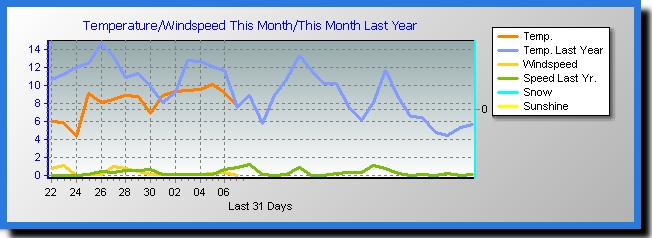Coldest day on record 4.8 °C at: 18:00 on: 23 Novembre 2025